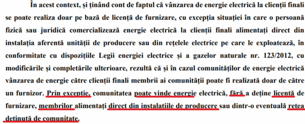 Problema apare la modul în care este definită excepția aplicabilă comunităților energetice.