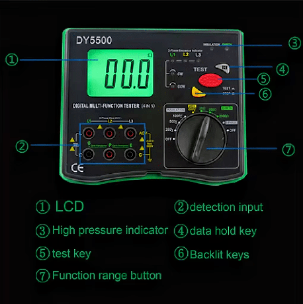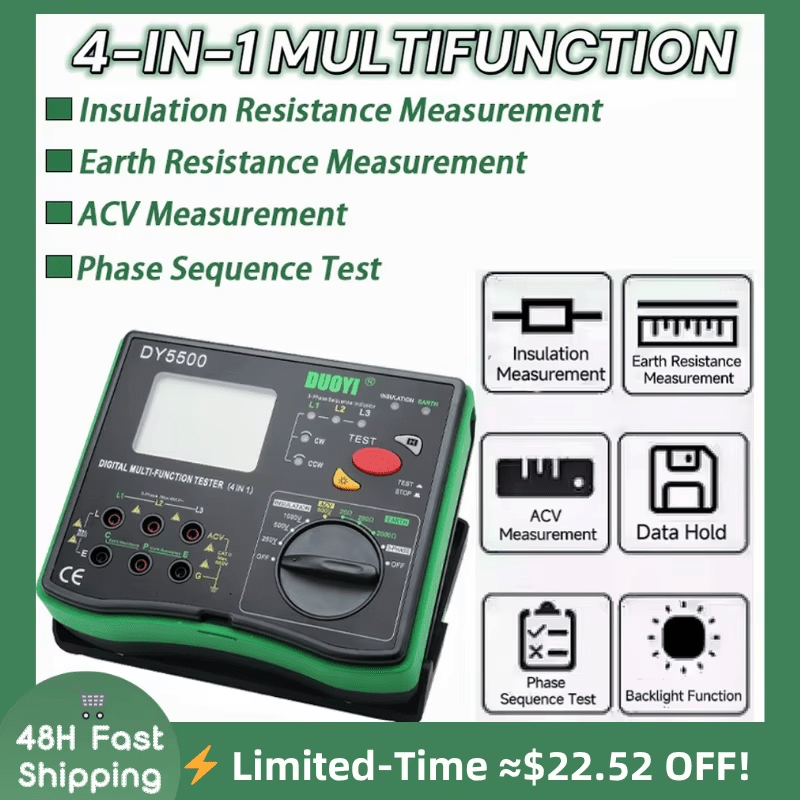 4-in-1Digital Multi-Function Tester Insulation+Earth Resistance Tester AC Voltage Phase Sequence Test High Accuracy Portable